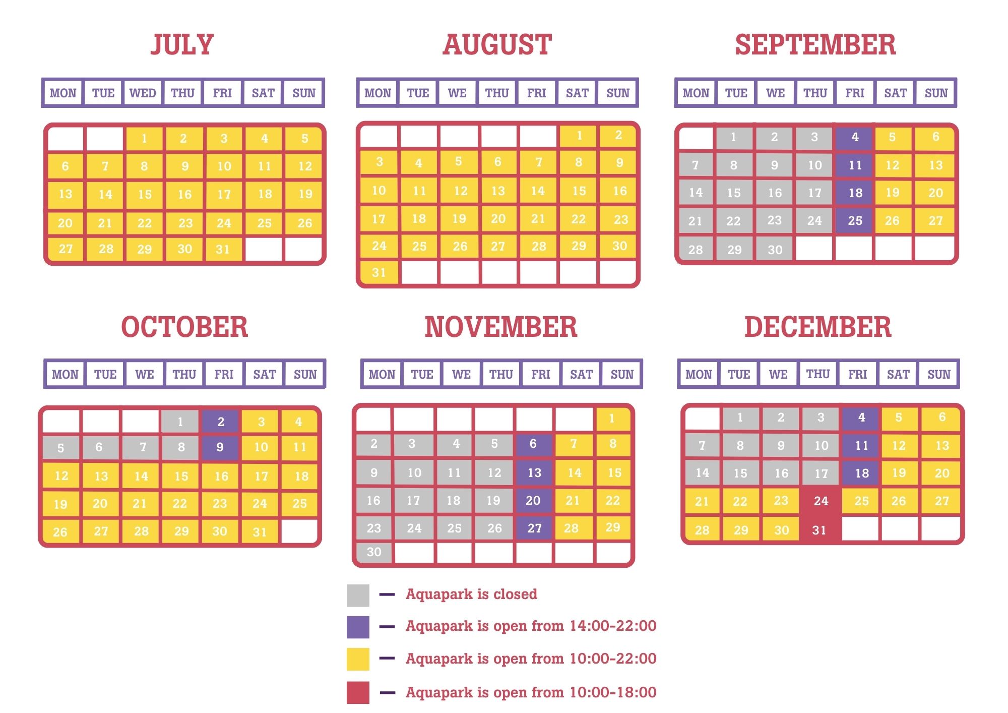Viron juhlapyhinä, kesäkuukausina ja koulujen loma-aikoina Virossa, Suomessa ja Latviassa Atlantis H2O Aquapark on avoinna joka päivä klo 10.00 alkaen.