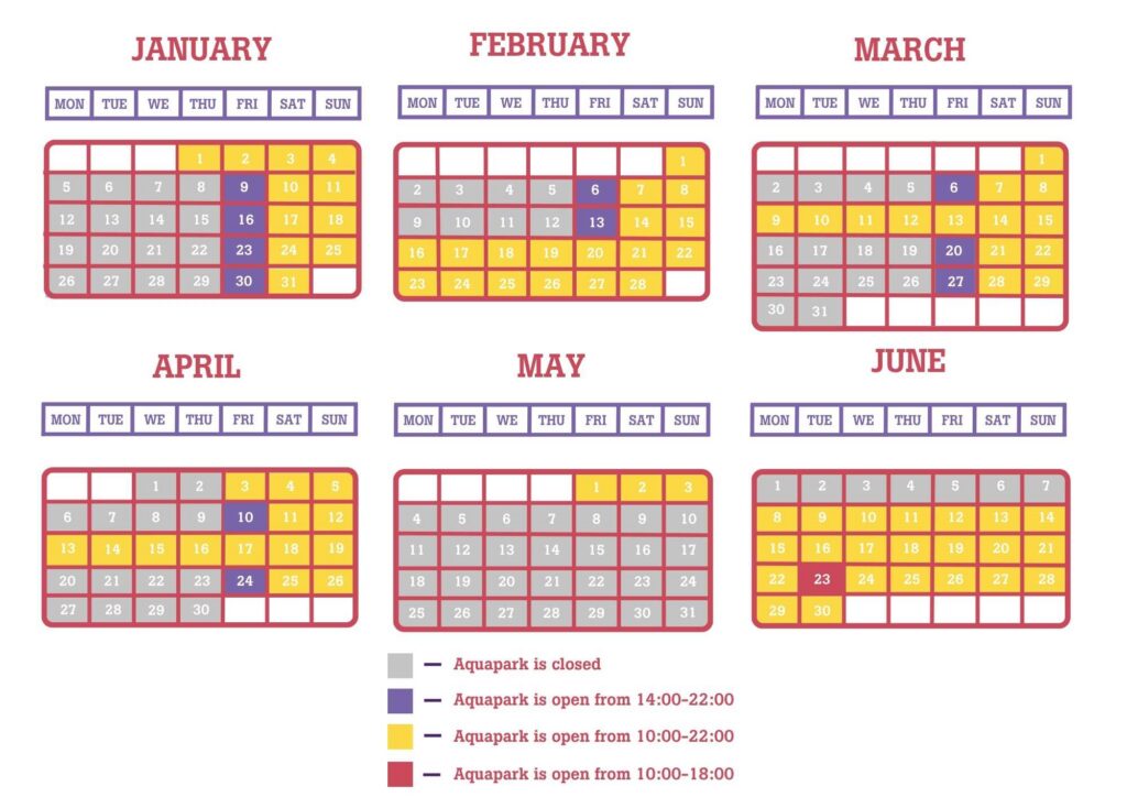 NB! Akvaparka atrakcijas tiks slēgtas 21:45.
